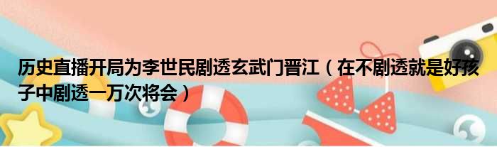 历史直播开局为李世民剧透玄武门晋江(在不剧透就是好孩子中剧透一万次将会)