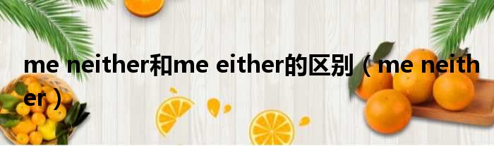 导读 大家好,今天小六子来为大家解答以下的问题,关于me neither和me either的区别,me neither这个很多人还不知道,现在让我们一起来看看吧