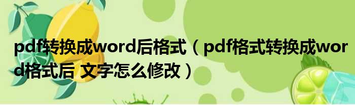 pdf转换成word后格式(pdf格式转换成word格式后 文字怎么修改)