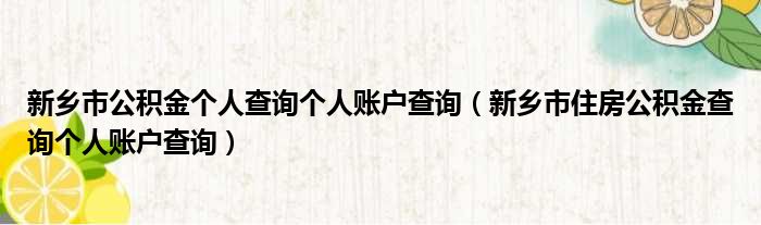 新乡市公积金个人查询个人账户查询(新乡市住房公积金查询个人账户查询)