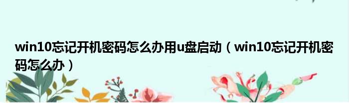 win10忘记开机密码怎么办用u盘启动(win10忘记开机密码怎么办)