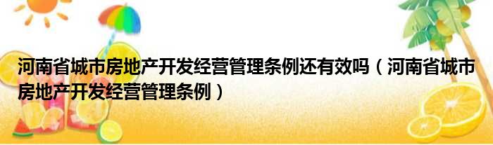 河南省城市房地产开发经营管理条例还有效吗(河南省城市房地产开发经营管理条例)