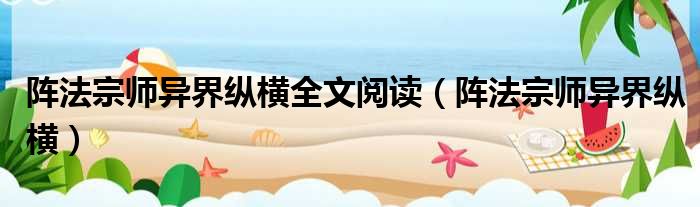 阵法宗师异界纵横全文阅读(阵法宗师异界纵横)