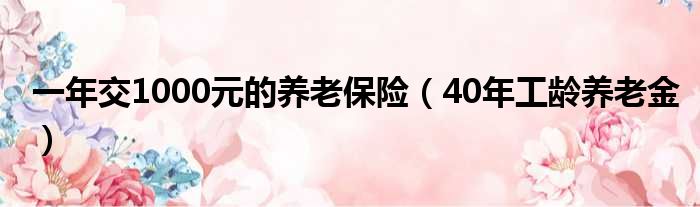 导读 大家好,今天小六子来为大家解答以下的问题,关于一年交1000元的养老保险,40年工龄养老金这个很多人还不知道,现在让我们一起来看看吧!1、