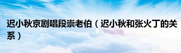 导读 大家好,今天小六子来为大家解答以下的问题,关于迟小秋京剧唱段崇老伯,迟小秋和张火丁的关系这个很多人还不知道,现在让我们一起来看看吧