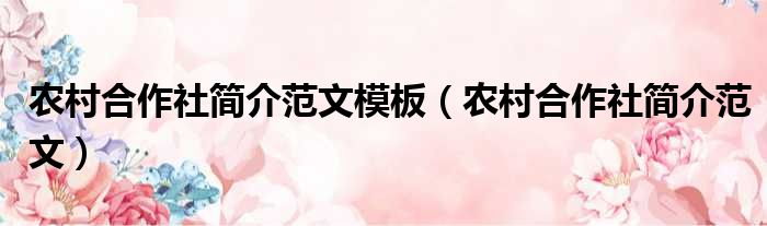 农村合作社简介范文模板(农村合作社简介范文)