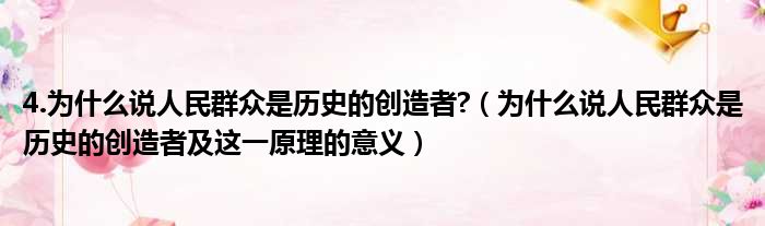 4.为什么说人民群众是历史的创造者?(为什么说人民群众是历史的创造者及这一原理的意义)