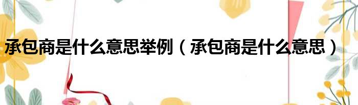 导读 大家好,今天小六子来为大家解答以下的问题,关于承包商是什么意思举例,承包商是什么意思这个很多人还不知道,现在让我们一起来看看吧!1、