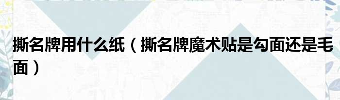 导读 大家好,今天小六子来为大家解答以下的问题,关于撕名牌用什么纸,撕名牌魔术贴是勾面还是毛面这个很多人还不知道,现在让我们一起来看看吧