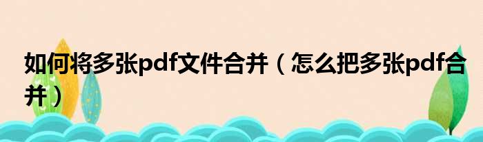 如何将多张pdf文件合并(怎么把多张pdf合并)