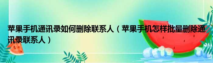 苹果手机通讯录如何删除联系人(苹果手机怎样批量删除通讯录联系人)