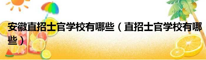 安徽直招士官学校有哪些(直招士官学校有哪些)
