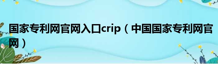 导读 大家好,今天小六子来为大家解答以下的问题,关于国家专利网官网入口crip,中国国家专利网官网这个很多人还不知道,现在让我们一起来看看吧