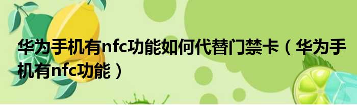 华为手机有nfc功能如何代替门禁卡(华为手机有nfc功能)
