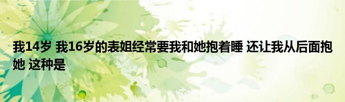 大家好,今天小六子来为大家解答以下的问题,关于我14岁 我16岁的表姐经常要我和她抱着睡 还让我从后面抱她 这种是这个很多人还不知道,现在让我们一起来看看吧!