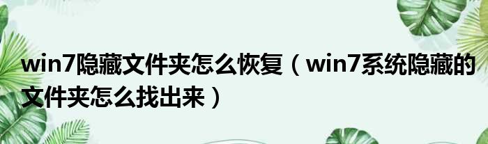 win7隐藏文件夹怎么恢复(win7系统隐藏的文件夹怎么找出来)