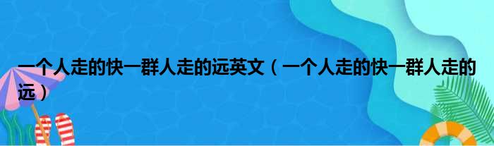 一个人走的快一群人走的远英文(一个人走的快一群人走的远)