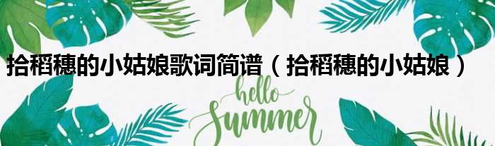 导读 大家好,今天小六子来为大家解答以下的问题,关于拾稻穗的小姑娘歌词简谱,拾稻穗的小姑娘这个很多人还不知道,现在让我们一起来看看吧!1、