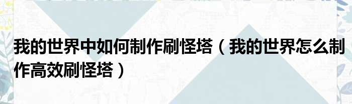 1、我的世界怎么制作高效刷怪塔攻略: 我的世界里面刷怪塔是玩家快速获取装备材料的装置,可能很多玩家对刷怪塔的机制不是很了解,最近有玩家分享了一个比较简单高效的刷怪塔,可以快速刷出并消灭怪物,下面是详细制作方法解析。