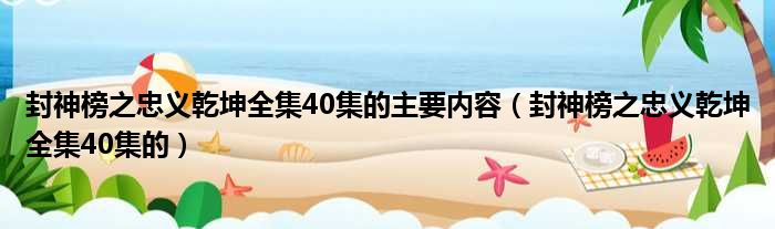 封神榜之忠义乾坤全集40集的主要内容(封神榜之忠义乾坤全集40集的)