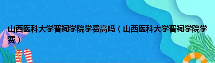 山西医科大学晋祠学院学费高吗(山西医科大学晋祠学院学费)