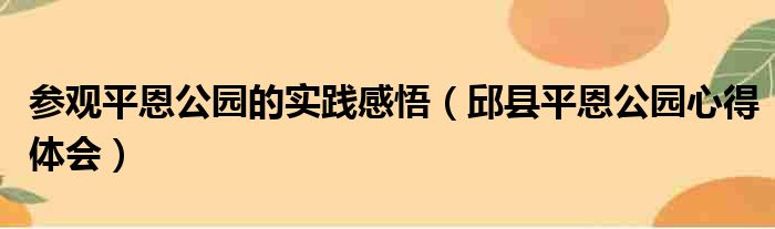 参观平恩公园的实践感悟(邱县平恩公园心得体会)
