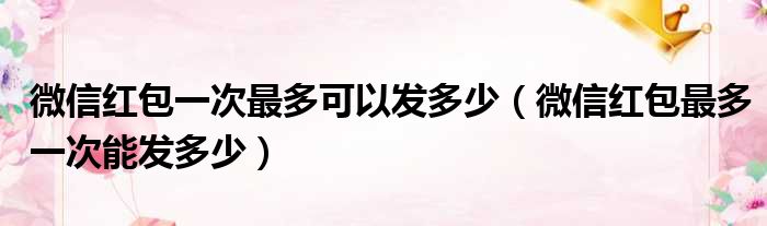 导读 大家好,今天小六子来为大家解答以下的问题,关于微信红包一次最多可以发多少,微信红包最多一次能发多少这个很多人还不知道,现在让我们一