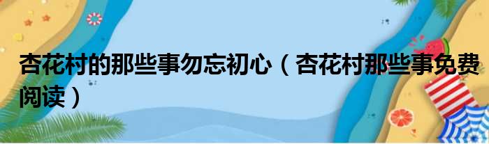 杏花村的那些事勿忘初心(杏花村那些事免费阅读)