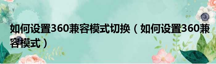 如何设置360兼容模式切换(如何设置360兼容模式)