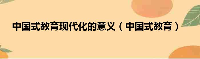 大家好,今天小六子来为大家解答以下的问题,关于中国式教育现代化的意义,中国式教育这个很多人还不知道,现在让我们一起来看看吧!