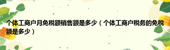 导读 大家好,今天小六子来为大家解答以下的问题,关于个体工商户月免税额销售额是多少,个体工商户税务的免税额是多少这个很多人还不知道,现在