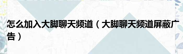 怎么加入大脚聊天频道(大脚聊天频道屏蔽广告)