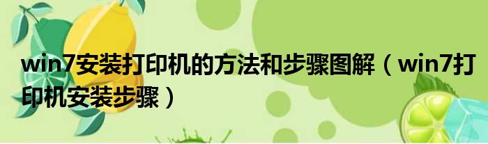 win7安装打印机的方法和步骤图解(win7打印机安装步骤)
