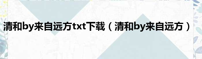 清和by来自远方txt下载(清和by来自远方)