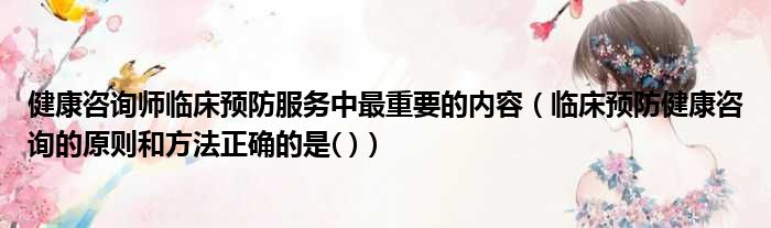 健康咨询师临床预防服务中最重要的内容(临床预防健康咨询的原则和方法正确的是( ))