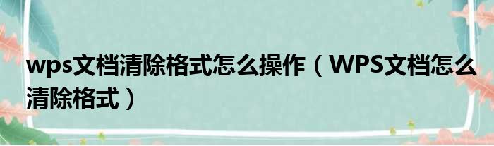 wps文档清除格式怎么操作(WPS文档怎么清除格式)