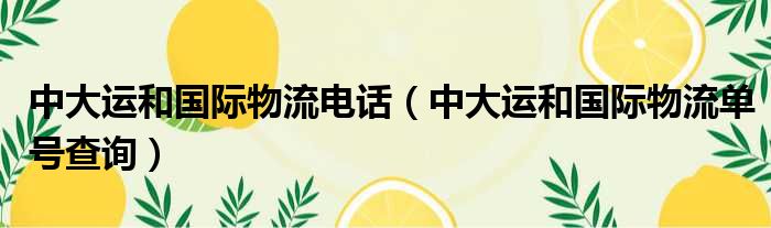 导读 大家好,今天小六子来为大家解答以下的问题,关于中大运和国际物流电话,中大运和国际物流单号查询这个很多人还不知道,现在让我们一起来看...