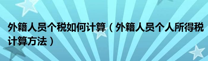外籍人员个税如何计算(外籍人员个人所得税计算方法)