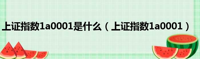 大家好,今天小六子来为大家解答以下的问题,关于上证指数1a0001是什么,上证指数1a0001这个很多人还不知道,现在让我们一起来看看吧!