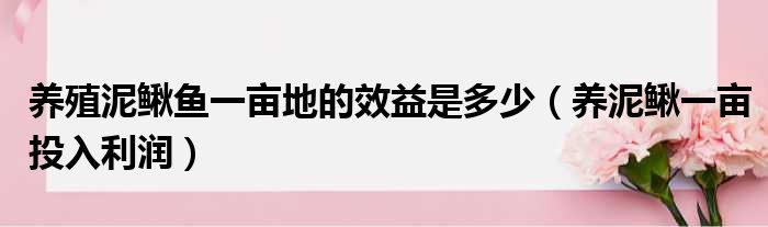 养殖泥鳅鱼一亩地的效益是多少(养泥鳅一亩投入利润)