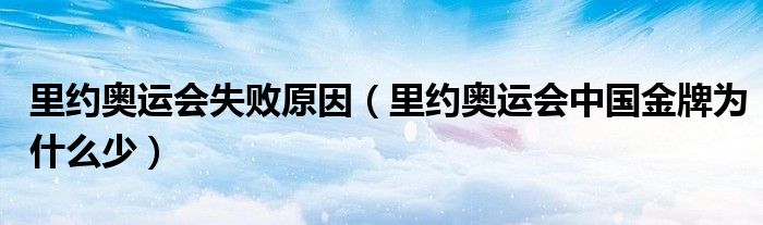 导读 大家好,今天小六子来为大家解答以下的问题,关于里约奥运会失败原因,里约奥运会中国金牌为什么少这个很多人还不知道,现在让我们一起来看...