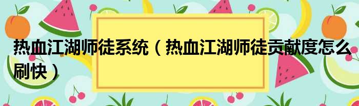 热血江湖师徒系统(热血江湖师徒贡献度怎么刷快)