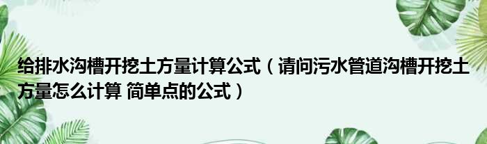 给排水沟槽开挖土方量计算公式(请问污水管道沟槽开挖土方量怎么计算 简单点的公式)