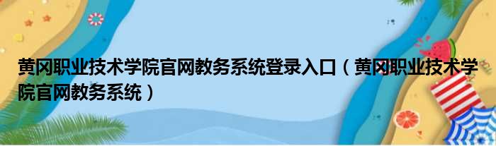 黄冈职业技术学院官网教务系统登录入口(黄冈职业技术学院官网教务系统)
