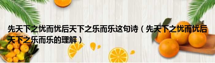 先天下之忧而忧后天下之乐而乐这句诗(先天下之忧而忧后天下之乐而乐的理解)