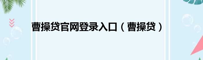 大家好,小房来为大家解答以上的问题。曹操贷官网登录入口,曹操贷这个很多人还不知道,现在让我们一起来看看吧!