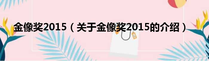 大家好,小房来为大家解答以上的问题。金像奖2015,关于金像奖2015的介绍很多人还不知道,现在让我们一起来看看吧!