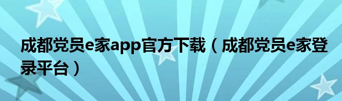 成都党员e家app官方下载(成都党员e家登录平台)