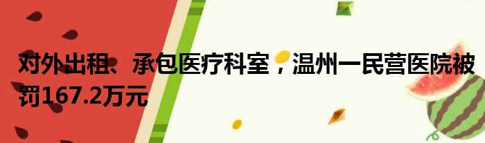 对外出租、承包医疗科室,温州一民营医院被罚167.2万元
