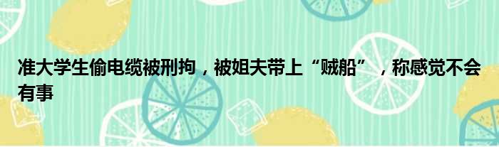 您的位置:首页 >房产频道 > 今日焦点 > 准大学生偷电缆被刑拘,被姐夫带上“贼船”,称感觉不会有事 2023-08-17 20:57:02 • 来源: 导读 据半岛都市报,近日,山东烟台,一企业报警称车间多捆电缆被盗,民警侦查锁定嫌疑人并将其抓获。犯罪嫌疑人李某因负债带上女友18岁的弟弟一... 据半岛都市报,近日,山东烟台,一企业报警称车间多捆电缆被盗,民警侦查锁定嫌疑人并将其抓获。犯罪嫌疑人李某因负债带上女友18岁的弟弟一起偷电缆。两人已被刑事拘留。 免责声明:本文由用户上传,如有侵权请联系删除! 上一篇:重庆97名设计师因降薪太狠集体离职,一年后被公司起诉 下一篇:最后一页